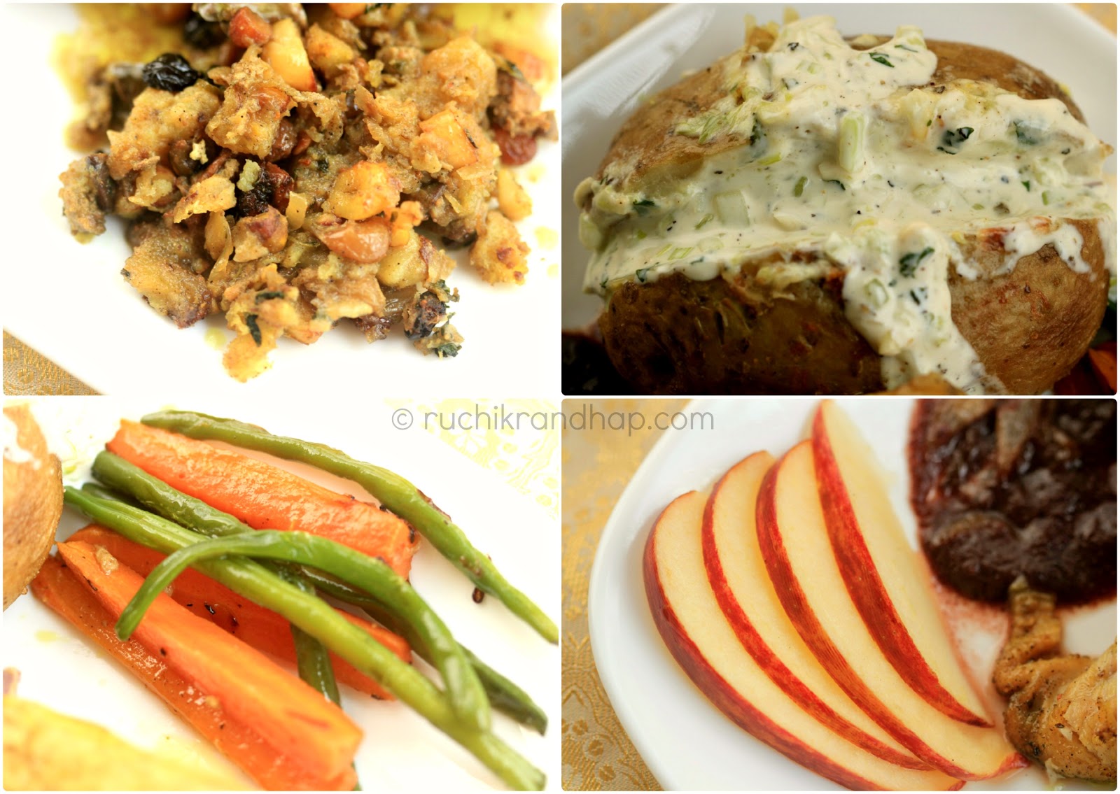 1. Chicken or Turkey: If you are using turkey instead of chicken, then chances are that the turkey weighs nothing less than 3kgs. Just double the quantities of all the ingredients especially you may want to increase the number of bread slices and boiled potato cubes as a turkey will have a larger stomach cavity. Extra stuffing won't go a waste - trust me. A turkey weighing 3-4 kilos can easily serve 6-8 people. 2. Stew Masala Powder: Is a typical Mangalorean spice blend used for meat/vegetable stews. Substitute 1 tsp stew masala powder with 1/4 tsp turmeric pwd + 1/4 tsp cumin pwd+1/2 tsp pepper pwd. 3. Sides: You may serve any kind of stir fried veggies you fancy. Throw in baby potatoes, button mushrooms, broccoli or baby corn.